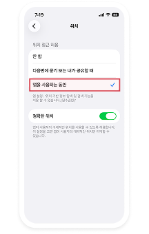'정확한 위치 사용'도