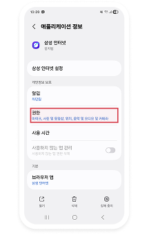 [권한]을 눌러주세요.
