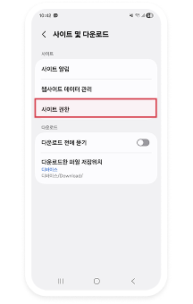 인터넷 설정 > 사이트 권한을 클릭합니다.