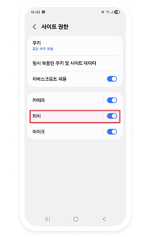 메뉴 중 ‘위치’ 항목을 찾아 상태값(묻기)을 체크하고 ‘허용’ 를 눌러주세요.